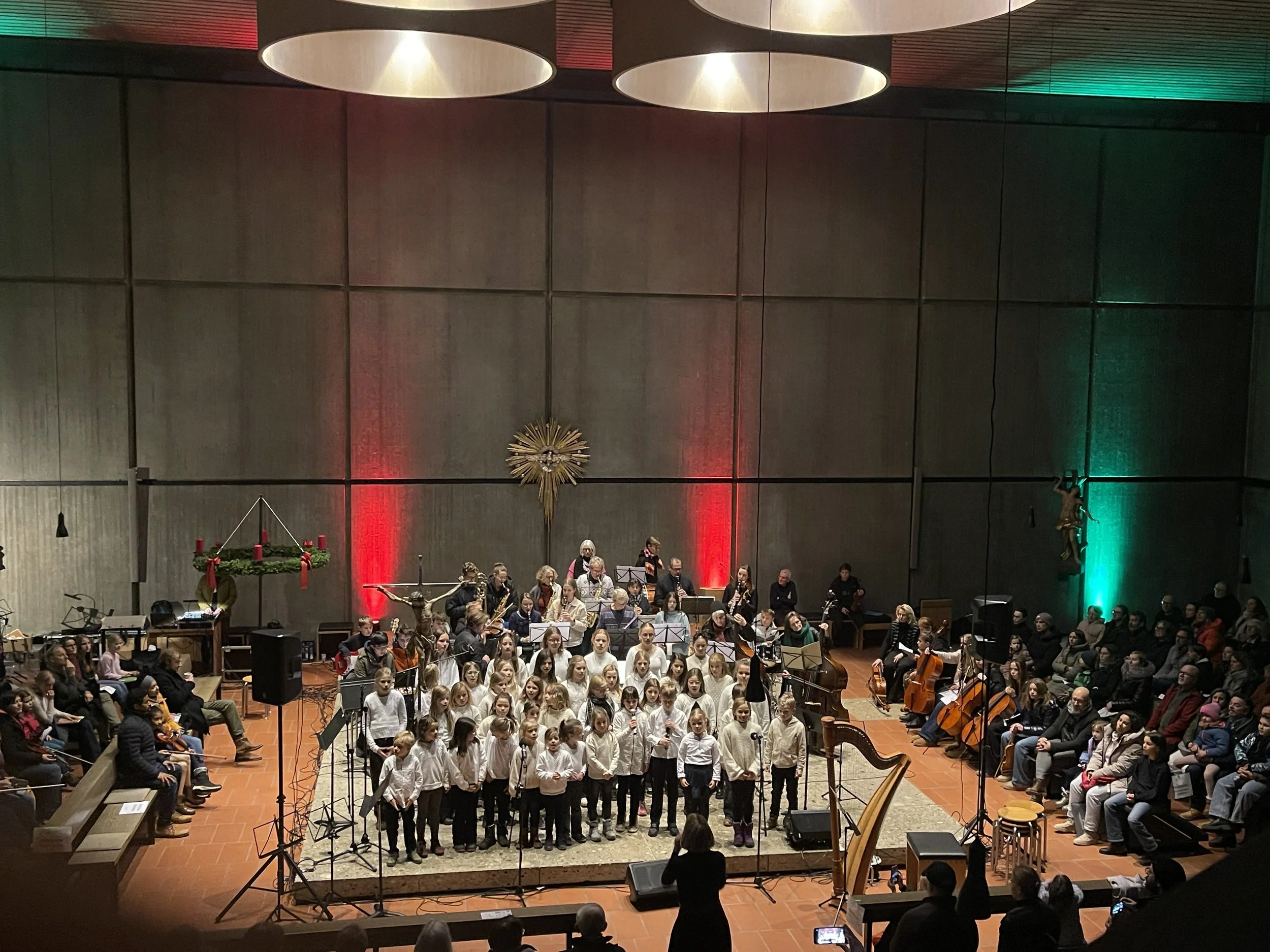 Das diesjährige Adventskonzert fand in einer bis auf den letzten Platz gefüllten Kirche (St. Elisabeth) statt und bot dem Publikum ein abwechslungsreiches musikalisches Programm. Die Spannweite reichte vom Kinderchor bis hin zu einem Beitrag der Förderklasse, die eigens arrangierte Weihnachtslieder mit Orgel präsentierte.